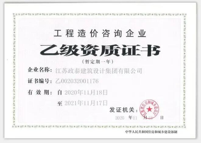 近日,经江苏省住房和城乡建设厅审查核准,集团新增了市政公用工程监理乙级资质、工程造价咨询企业乙级资质。经江苏省人民防空办公室审查核准,增项了人防工程监理丙级资质。